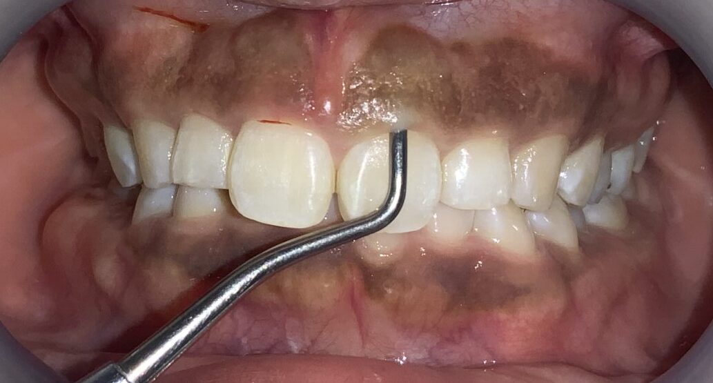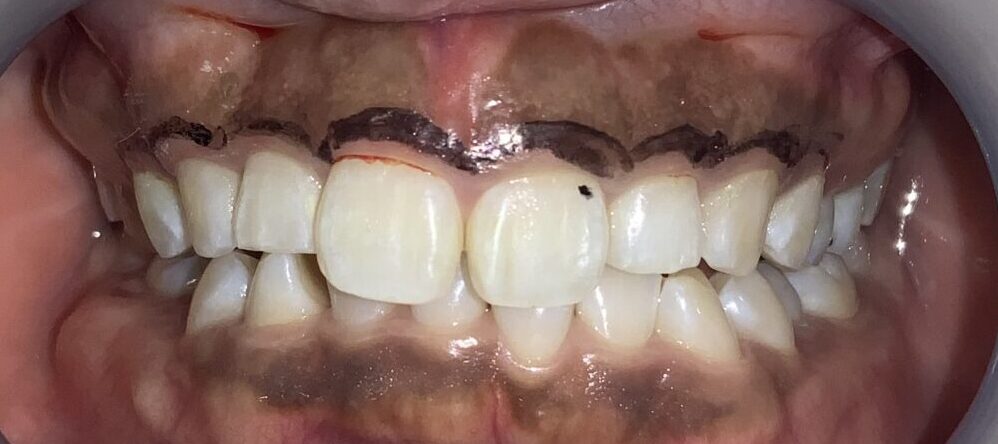 すべての歯の検査したら、切除範囲を決定して切除予定位置のマーキングを行います。この状態で患者様にご確認をしていただきます。