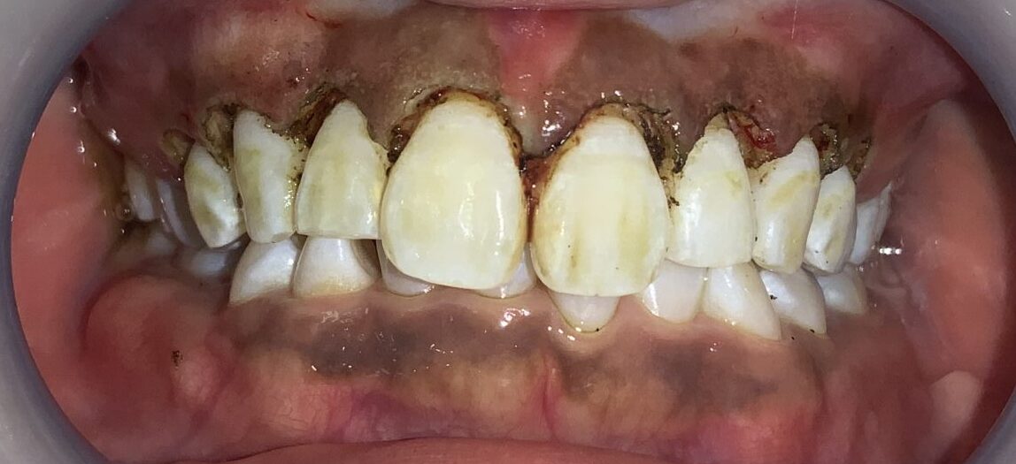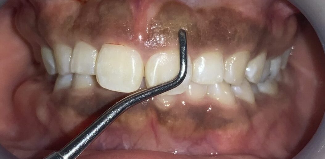 歯ぐきの検査をすると、こんなに歯ぐきが歯に被っています。