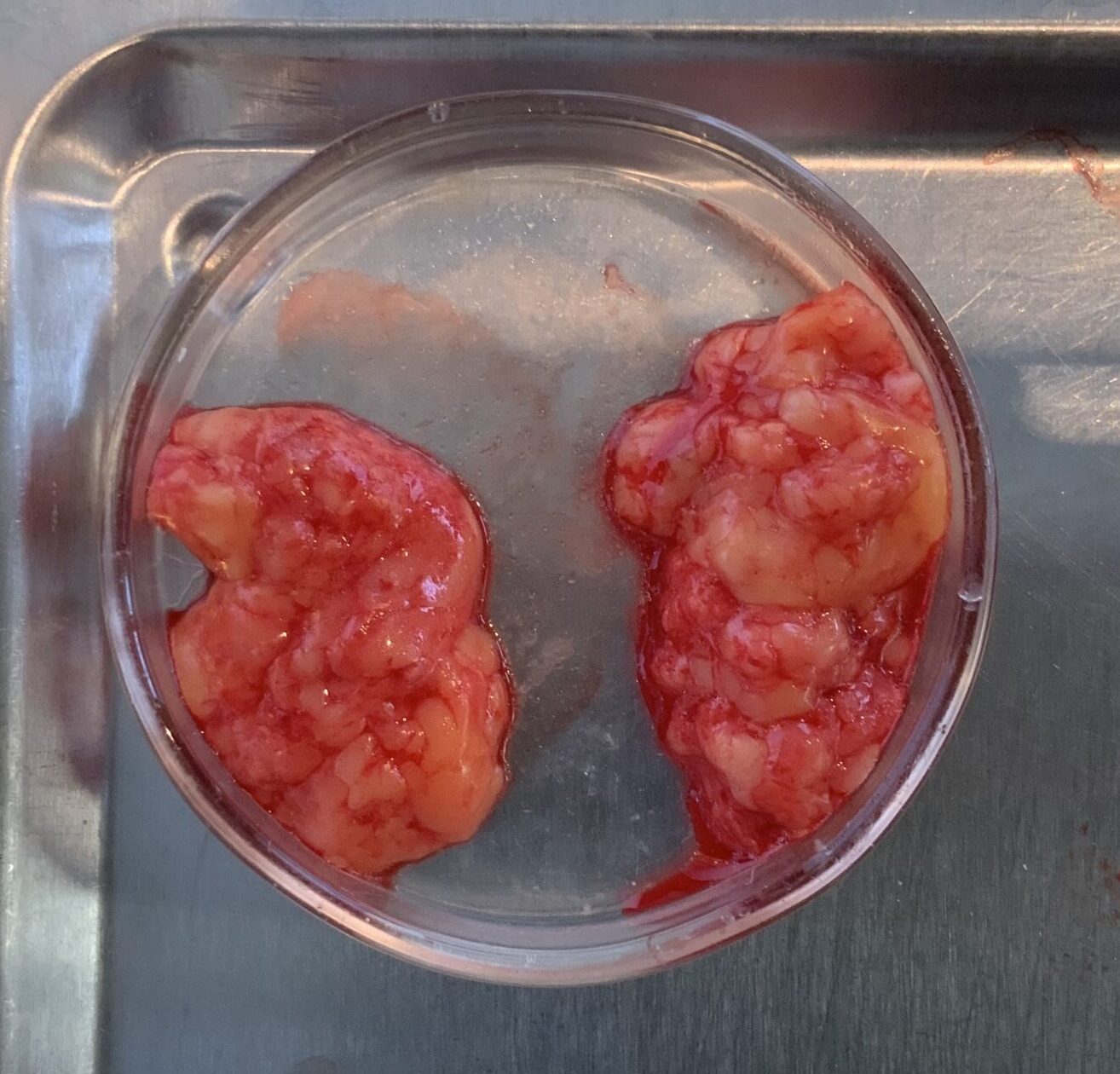 今回もいっぱい取れました。左右差が出ないように左側も均等に切除します。