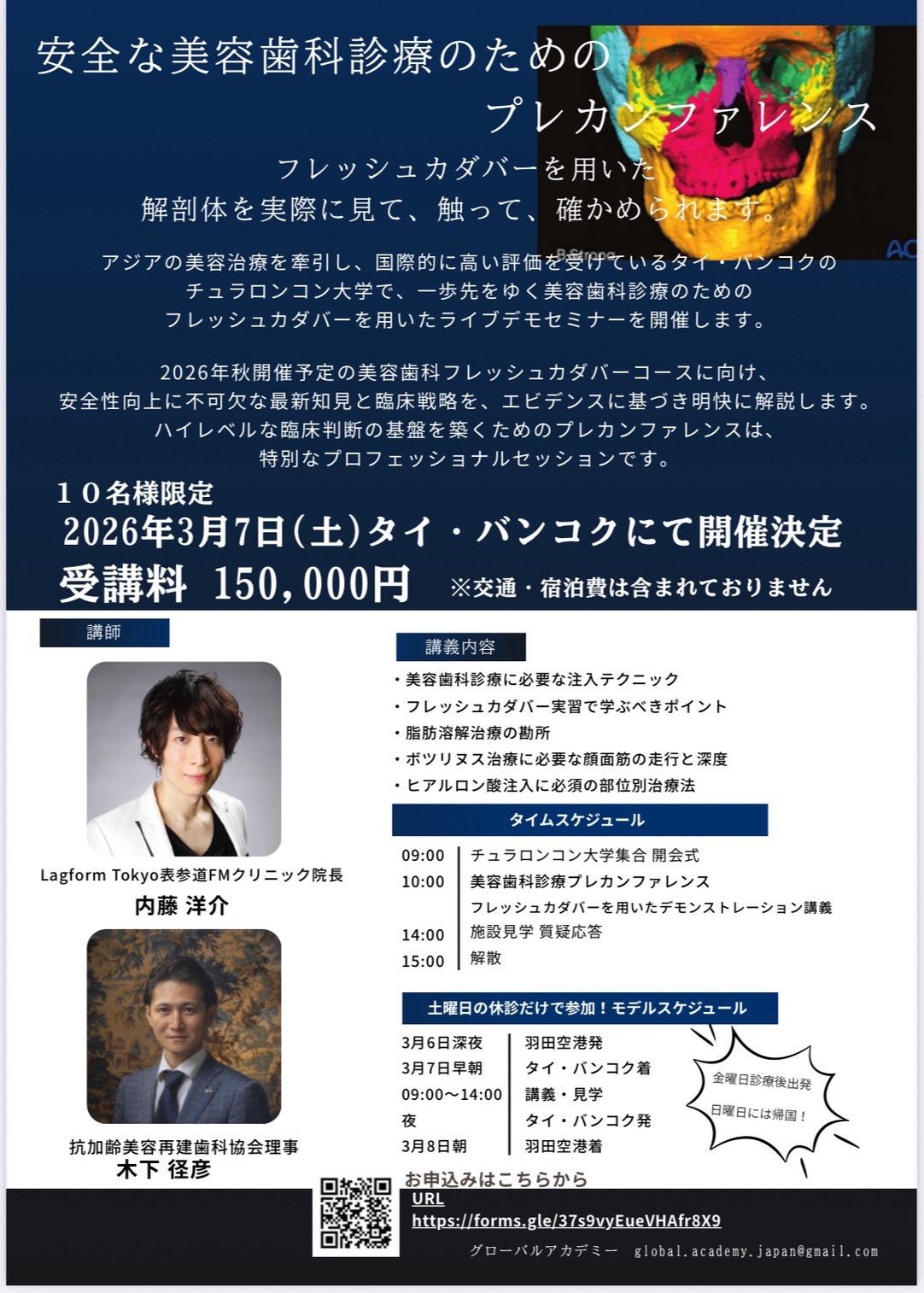 カンファークリニック院長の木下が口腔顎顔面外科医師としてタイで開催される解剖実習の講師としてインストラクター、講演登壇します。