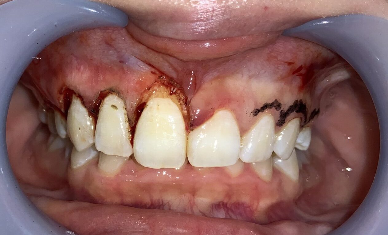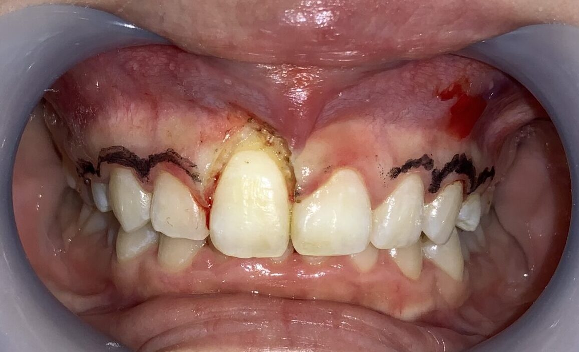 まずは1本だけ歯冠長延長術を行い、切除範囲や歯の大きさ、歯ぐきの長さ、歯と歯ぐきのマッチングを患者様に確認をして頂きます。