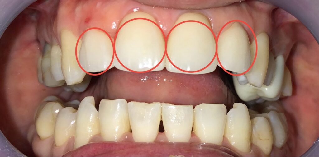 上下の前歯のうち、どれが被せ物の歯か分かりますか?