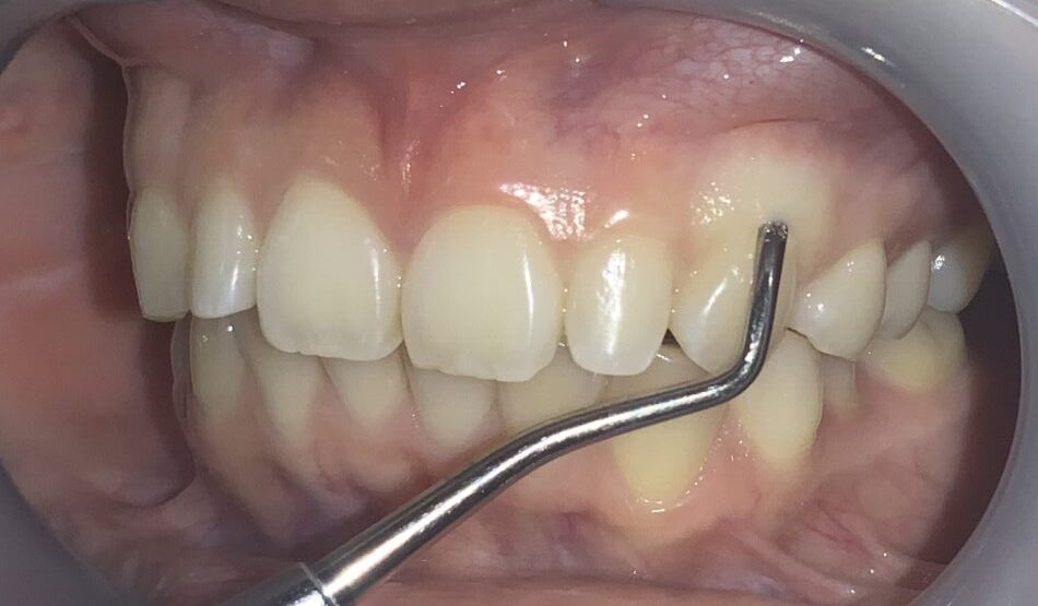 犬歯は歯ぐきの厚みが薄い部分と厚い部分があり、取りすぎると八重歯のようになってしまうので、細心の注意が必要です。