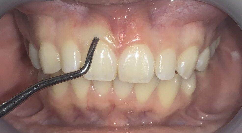 まずは1本の歯ぐきの整形をしてみます。隣の歯と比べた違いがわかりますね。