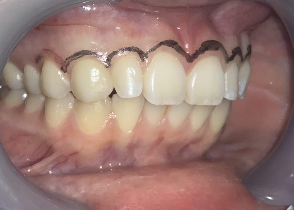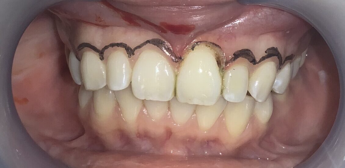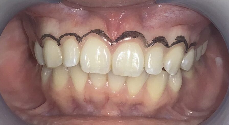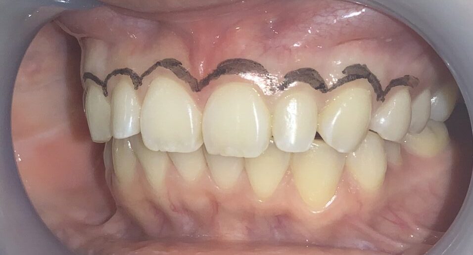 歯冠長延長術の範囲が決定しました。検査した歯ぐきと切除予定の範囲がピッタリと合っています。