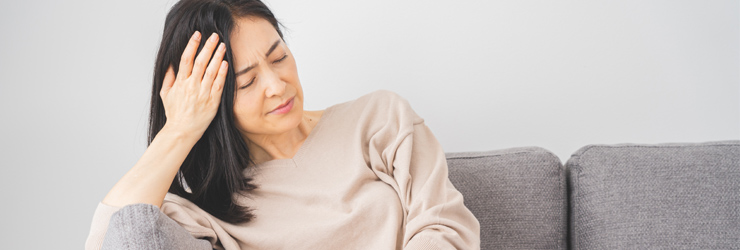 患者様はこのような状態が老化現象によって引き起こされていると考えがちですが、これも顔のコリの症状です。この部位での日常生活の不自由さや支障は、見た目のしわやタルミと咀嚼、発音など機能面の両面です。