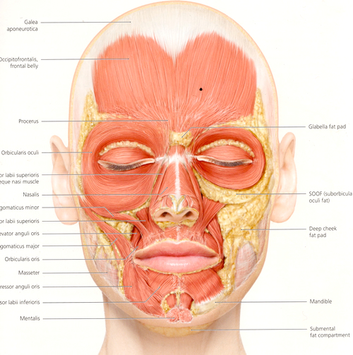 顔には薄く広く、浅い位置に分布する脂肪と、厚く塊状に、深い位置に分布する脂肪があります。