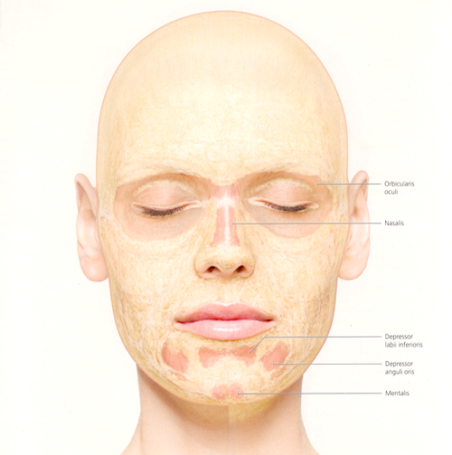 深い位置に分布する脂肪組織は表情筋といわれる顔面筋の直下に存在し筋肉を下支えする役割を果たしています。この脂肪は浅い位置にある脂肪と異なり、ある程度の塊となって存在し、表情筋の動きに同調し、張りと弾力に満ちた、美しいフェイスラインを保ちます。 しかし、塊状の脂肪組織も加齢現象によって崩れて「たるみ」が生じると、しわやたるみ、しもぶくれ、フェイスラインの乱れ、ほうれい線、マリオネットライン、頬のたるみの原因となるのです。 |