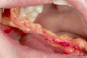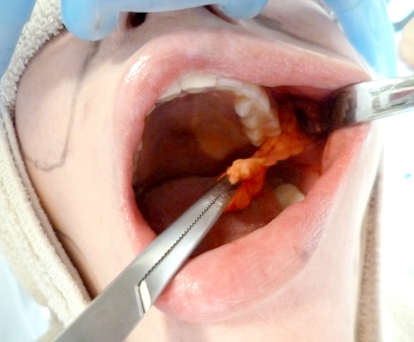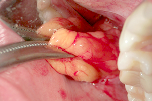 腫れは、口腔内が腫れるので、手術の後数日間は、食事が摂取しにくい。
