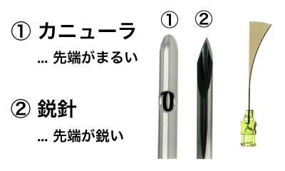 カニューラは先端が丸くなっており、針ではないため刺入時の痛みも注入時の痛みも全く感じません。