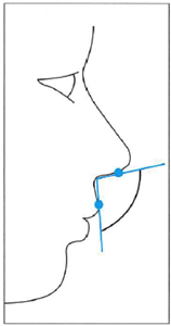 鼻尖から鼻下点までの中点とオトガイ部を結ぶ線に対して、白人では上下口唇の最突出点が接する時、最も調和のとれた側貌とされています。