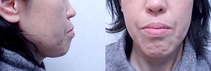 口を閉じたときにアゴ先にしわが出来てしまいます。