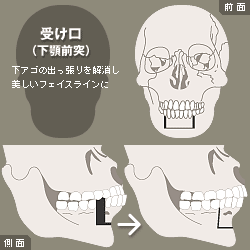 アゴ先の突出を合併している場合はオトガイ後退、短縮術なども同時におこなう場合もあります。