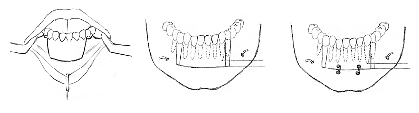 下顎の形態を改善させ、咬合機能の維持、向上を同時に図るための下顎骨体の手術である。