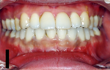 - 上の歯と下の歯の真ん中が合っていない左右非対称患者