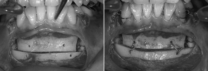 見た目の調整が終わり、かみ合わせも良くなったら、その位置に下あごの骨を固定します。後ろに下げた上のあごの位置に合わせます。
