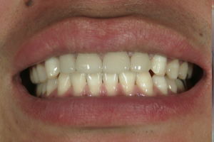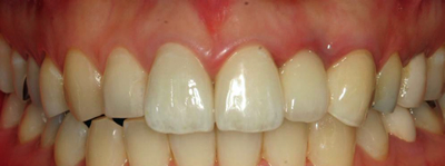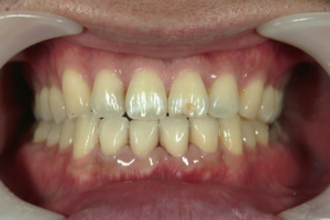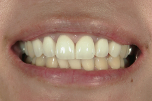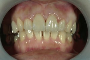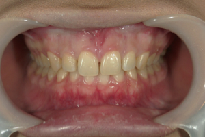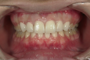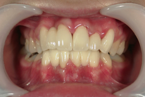カンファークリニックでは、ねじれて曲がってしまっている歯や、かみ合わせに、ニューヨークスタイルマウスピース美容矯正、ハリウッドスマイル治療をおこなっています。上の前歯4本のハリウッドスマイル治療により、歯の形、角度、色、バランスを自然な感じに仕上げました。