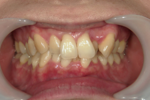 ガタガタな歯並びと八重歯をハリウッドスマイル法で2回の通院で治しました。歯の長さと歯ぐきの長さ、あごの長さを適切に整えて、咬み合せも完璧に治療が出来ました。