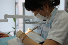また、形成中に特殊な薬剤を何回も使用し、エナメル質の厚みをチェックしながら、歯を削っています。まれに、エナメル質が非常に薄い場合があり、象牙質の露出が避けれれない場合は患者様にご説明して、治療方法の変更をおこなっています。
