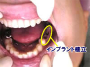 丁寧なカウンセリング、レントゲン等の検査により、インプラントが可能か、何本どのように入れるかなどを相談する。この患者様は向かって左側の奥歯が2本まったくないため、インプラントを2本埋め込む手術を行ます。 |