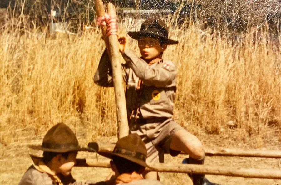 小学校、中学校ではカブスカウト、ボーイスカウトに夢中でした。