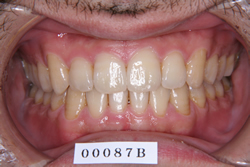 第三に、治療中の動きとシミュレーションとのギャップを埋めるための微調整です。この微調整はまさしく「神(紙)業」です。紙一枚分程度の隙間や誤差を調整していく微調整により理想的なかみ合わせや歯並び、フェイスラインを整えています。