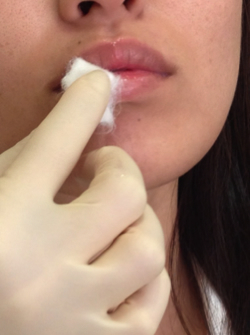 唇はとてもデリケートですので、クレンジングには滅菌ガーゼを使用して、医療グレードの清潔さでやさしくおこなっています。