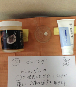 口元のピーリングは、フルーツ酸などの一般的なピーリング剤では刺激が強くかぶれてしまう事がありますので、当院では使用しておりません。カンファークリニックでは、天然オイルと天然クレイ(泥)による自然派志向のピーリングをおこない、口元の肌の再生を促しています。