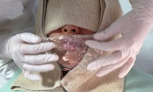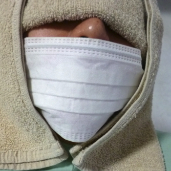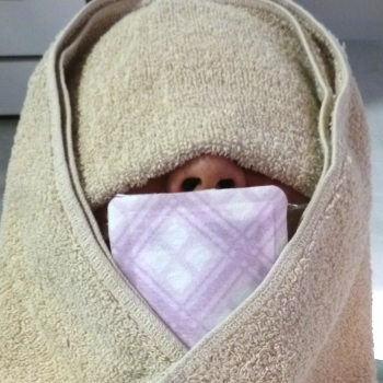 口元に置いたホットパックが落ちないようにするためと口元の栄養補給とパック効果を高めるために、マスク使用しています。ホットパックはほんのり温かく、保湿と保温効果を高めて、夢の世界へ導きます。