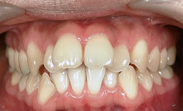 カンファークリニックでは、全体的なホワイトニングと部分的なホワイトニングを行なっており、真ん中の歯の右側の歯は、とても色が変色しています。