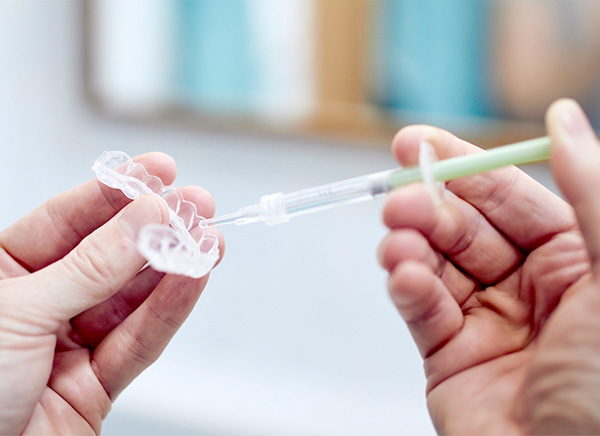 型を取り、ホワイトニング用のマウスピースを作成します。 |