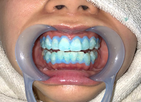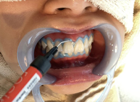 ホワイトニング後は一時的に歯の表面のバリア機能が弱くなっています。表面の保護と知覚過敏の予防も兼ねてフッ素でコーティング処置をします。 |